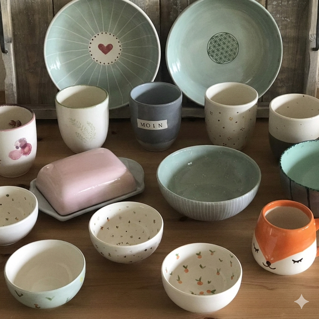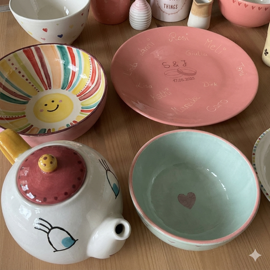 Schnappt euch eure Lieblingsmenschen und taucht ein in die Welt der Farben. Beim Keramikmalen entstehen persönliche Unikate und besondere Momente, die bleiben.